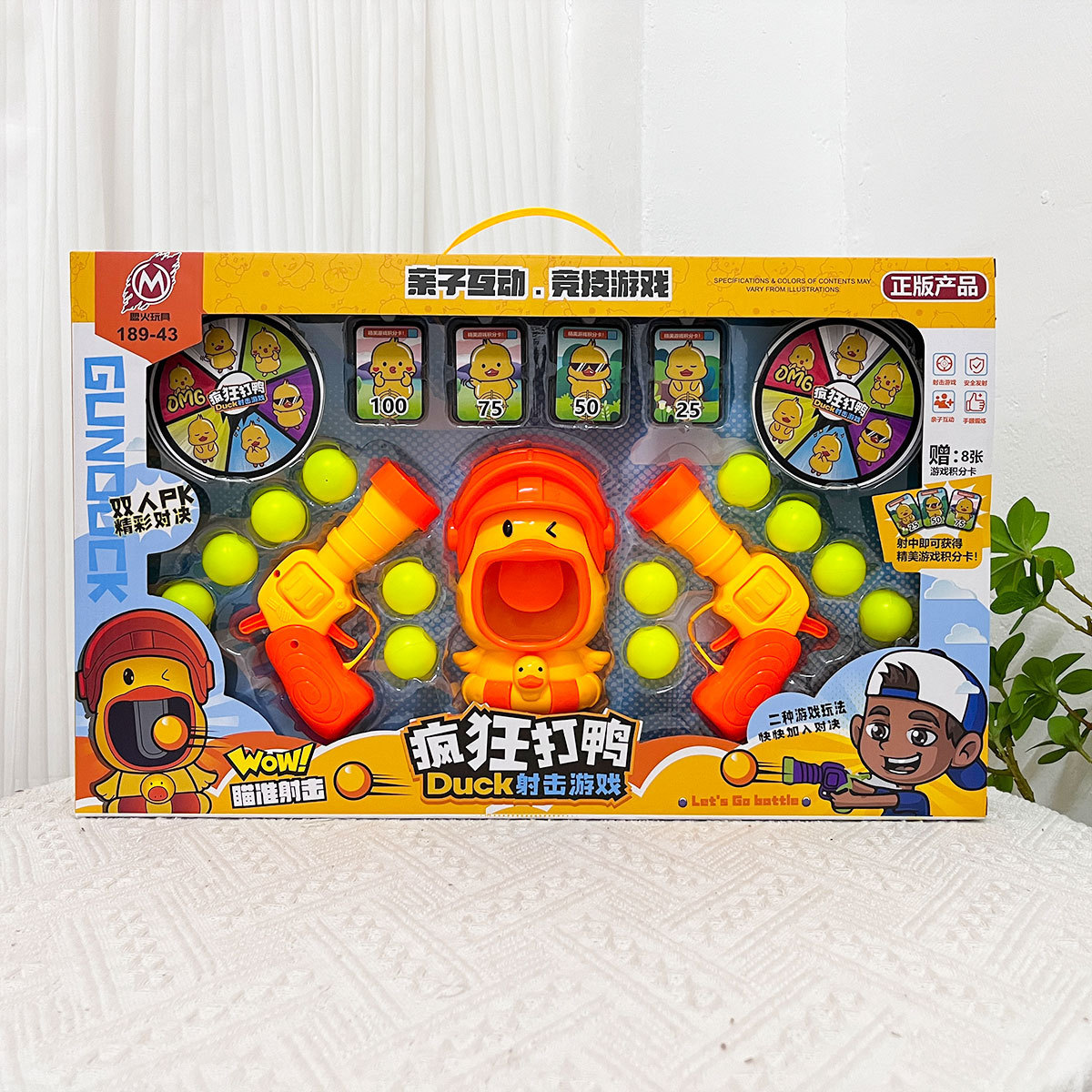 Mainan Anak Kartun Pistol Mainan Tenis Meja Bebek Kuning Target Senjata Softgun Menembak Set Interaktif Hadiah Institusi TK