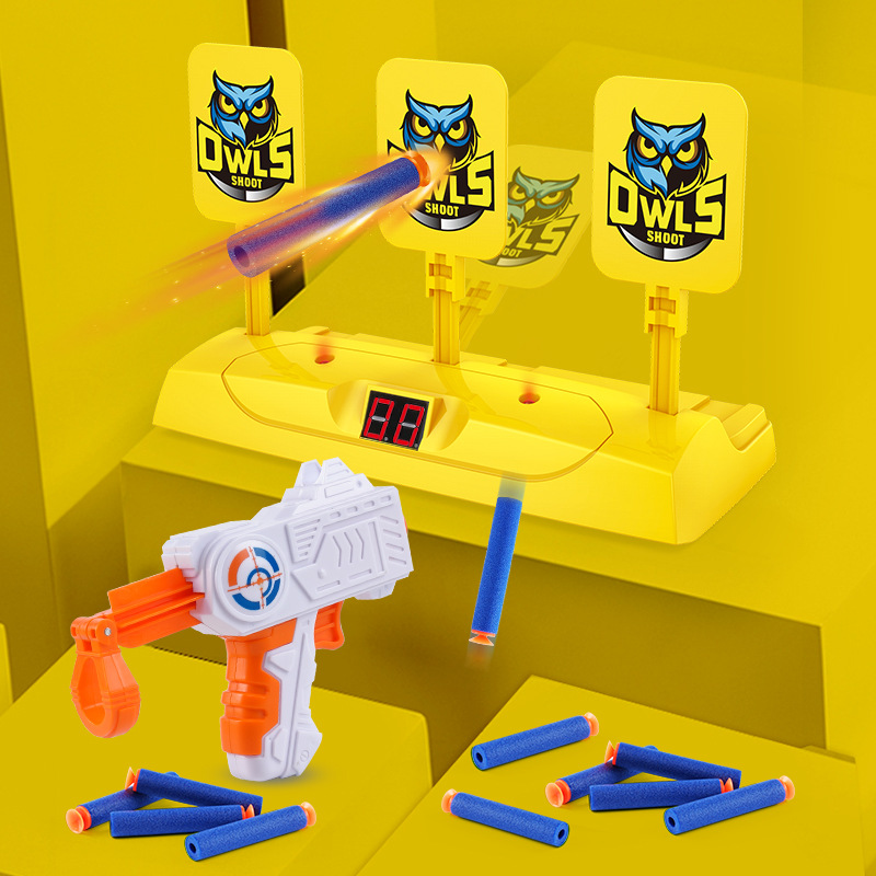 Mainan anak-anak aerodinamis softgun target listrik penilaian otomatis kembali target menembak kuning tiga digit