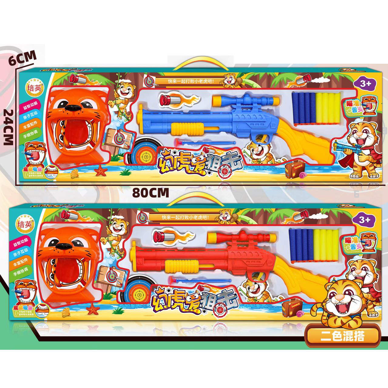 Anak-anak Puzzle Soft Gun Shooting Tiger Target Double Game Battle Mainan Anak Laki-laki Kotak Hadiah Besar Stand Grosir