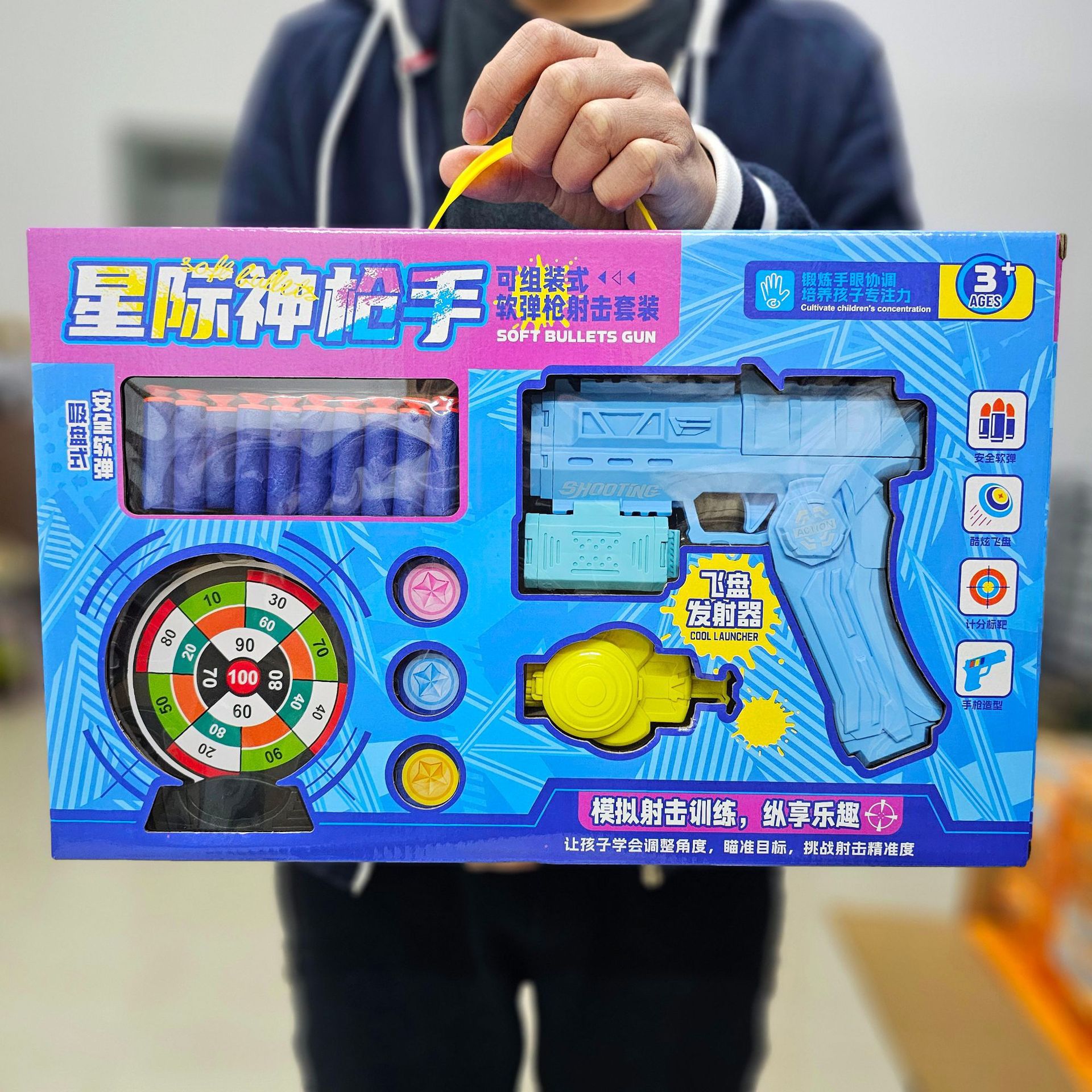 Anak laki-laki Star Sharpper Soft Gun Peluncur UFO Anak Dua Dalam Satu Permainan Menembak Mainan Gun Kotak Hadiah Besar