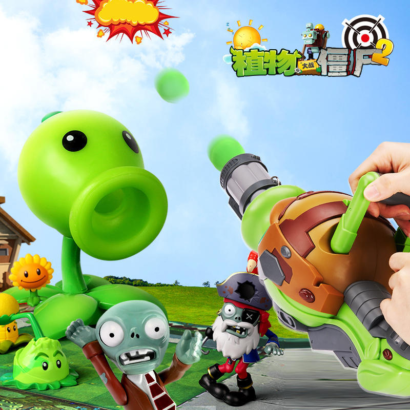 Asli Tanaman vs Zombies Pneumatik Cannon Shooter Pertempuran Mainan Pea Karet Lembut Boneka Anak Laki-laki 5