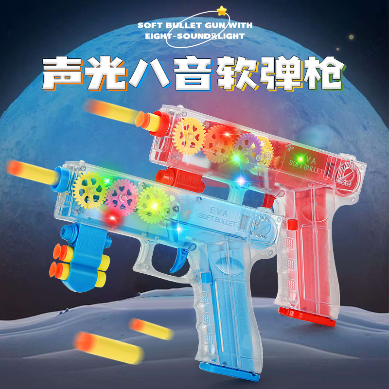 Listrik Transparan Roda Gigi Terhubung Mesin Suara EVA Soft Gun Dua Dalam Satu Lampu Musik Anak Laki-laki Mainan Pistol Pabrik