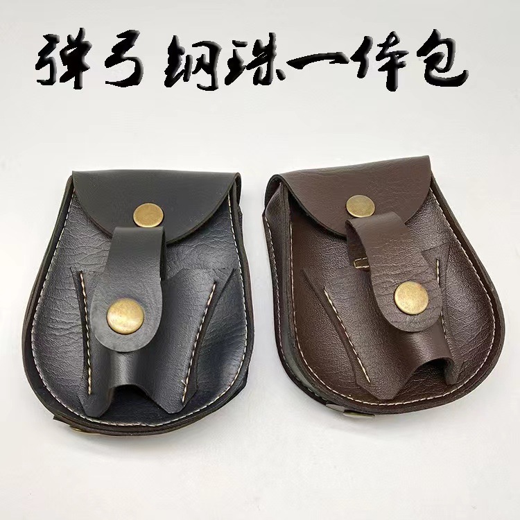 Tas slingshot luar ruangan bola baja tas kulit coklat hitam terintegrasi tahan lama tidak berubah bentuk casing kulit butik tas pinggang mainan