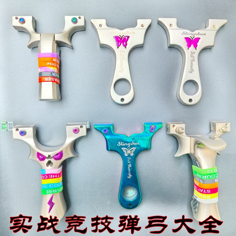 鸡王弹弓恶魔五代蝴蝶弹弓盖世英雄不锈钢户外实战竞技扁皮筋弓