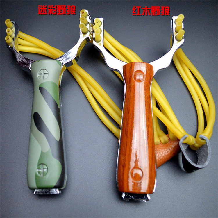 Kamuflase liar Serigala katapel kayu grain Rosewood perdagangan luar negeri manik-manik kartu 6-strand katapel seng Aloi katapel pabrik grosir