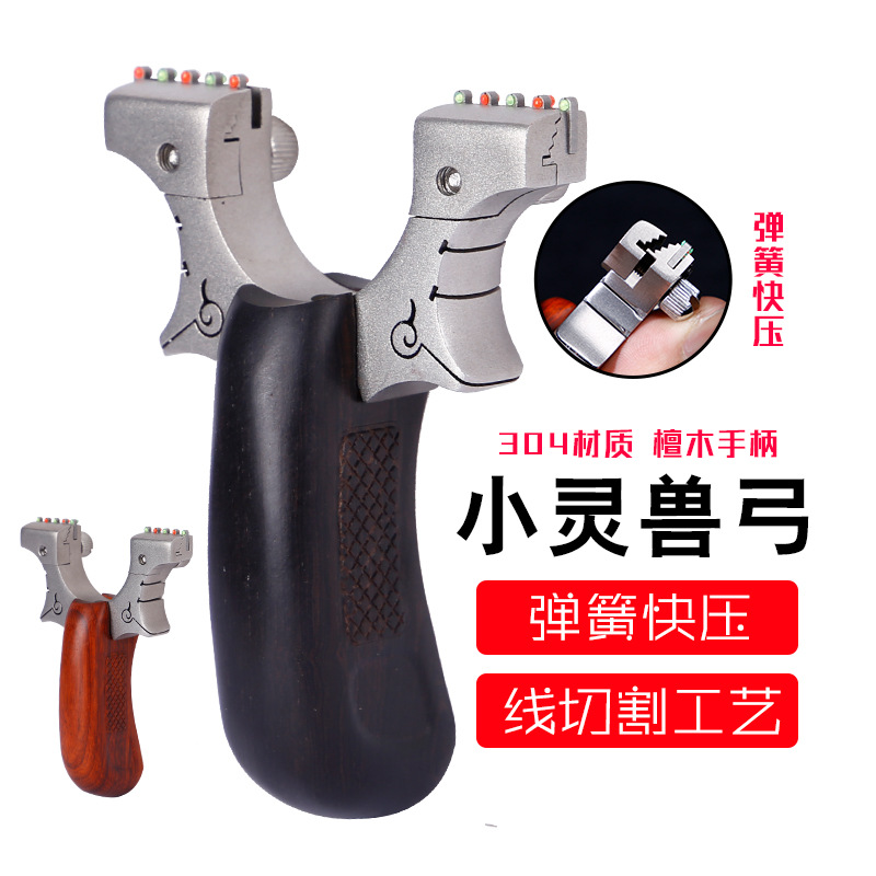Little Spirit beast slingshot katapel Mini siput baja tahan karat baru tanduk badak gagang kayu solid katapel kulit datar