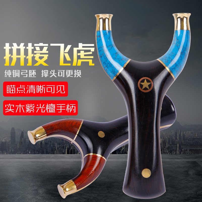 Katapel garpu harimau terbang jahitan kuningan Rosewood daun kecil Rosewood jahitan pirus bintang lima vas harimau terbang perangkat katapel mulut