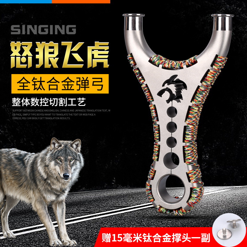 Titanium Aloi serigala marah slingshot kepala serigala terbang lurus busur harimau TC21 kulit datar kepala penyokong dapat dilepas luar ruangan kawat pemotongan katapel