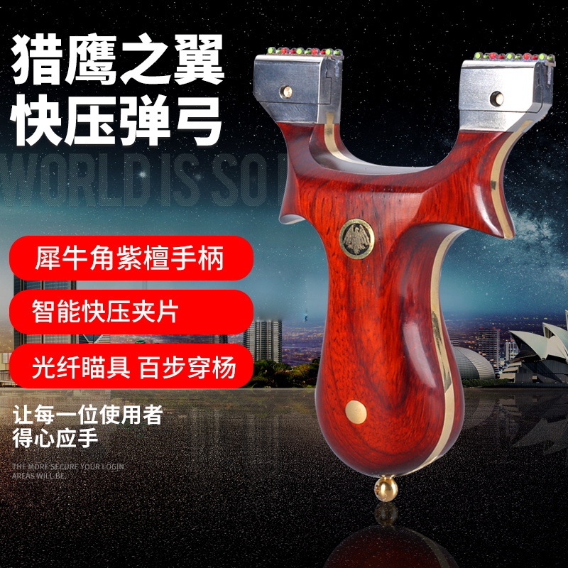 Slingshot klip katapel Rosewood, selempang presisi tekanan cepat, lempeng peluru Damo Falcon, Aloi titanium
