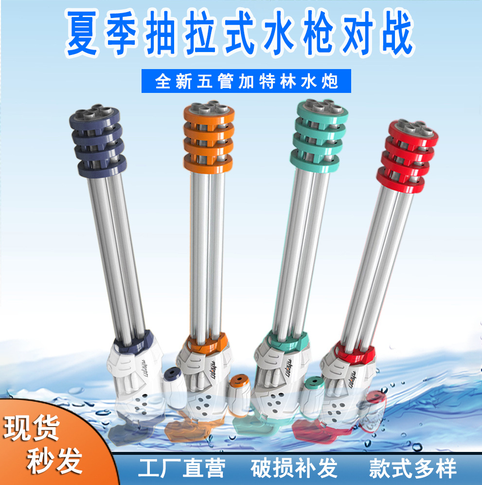 Mainan anak-anak, lima tabung Gatlin pistol air pull-out kapasitas besar pertempuran air pantai semprotan air meriam air bermain kios