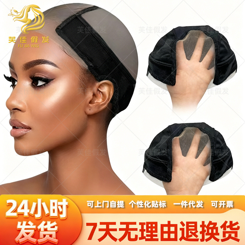 Topi jala wig berbentuk U 4*5 inci hitam, topi kepala wig renda beludru dua sisi topi jala kubah kulit