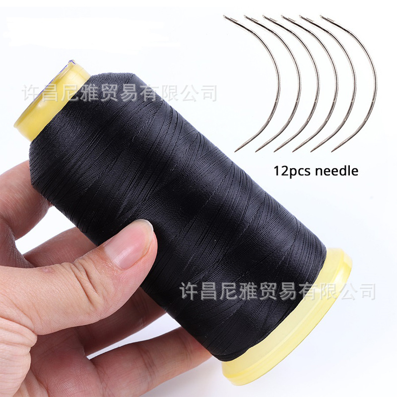 Jarum berbentuk C untuk ekstensi rambut wig jarum lengkung perak jarum Radian setengah lingkaran benang filamen poliester kekuatan tinggi benang hitam 150D