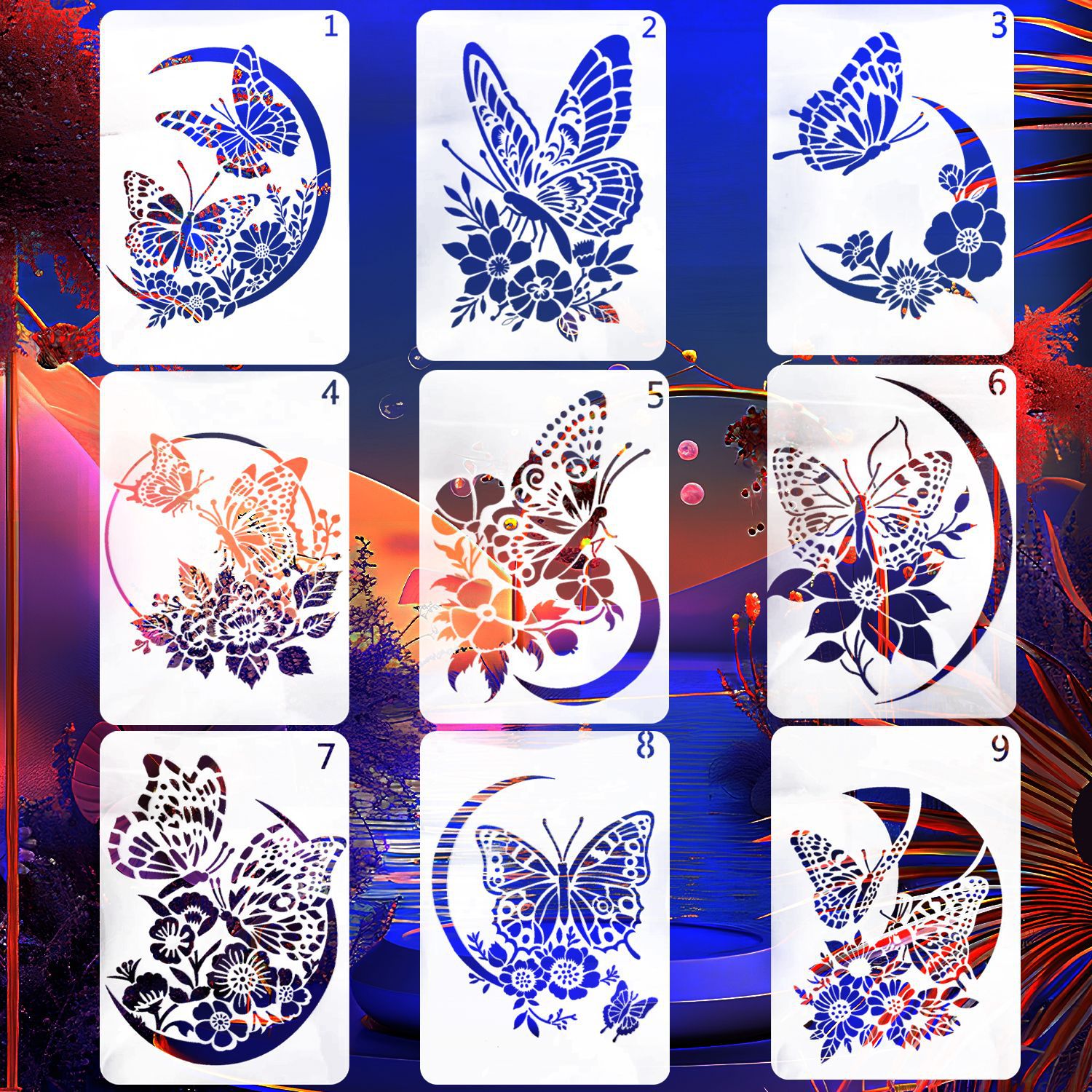Templat Lukisan Berongga Graffiti Anak Lintas Batas Tongkat Lukisan Minyak Siswa Kupu-kupu Bulan Bunga Bermotif Gambar Gambar Tangan Koran