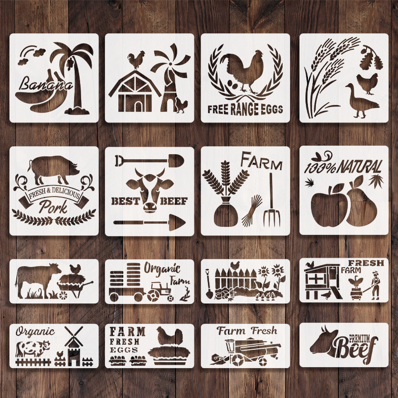 Templat lukisan Amazon lintas batas, 16 buah templat tekstur, templat tema dekorasi tekstur berongga, templat gambar edukatif