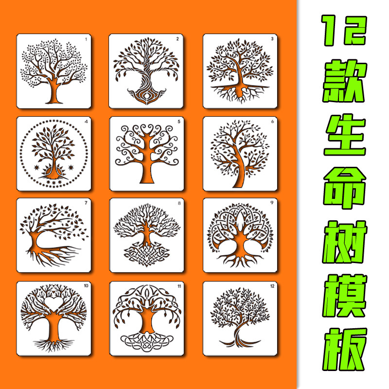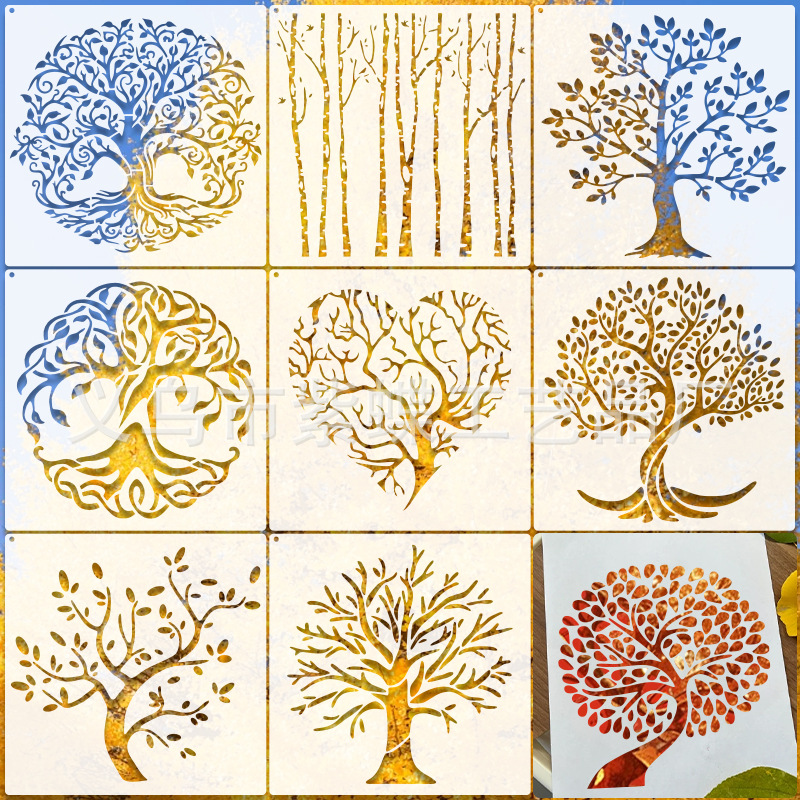 Cross-Border Baru Pohon Kehidupan Berongga Template Lukisan Dekorasi Dinding Pohon Lukisan Template Tas Bahu Lukisan Tangan Grafiti