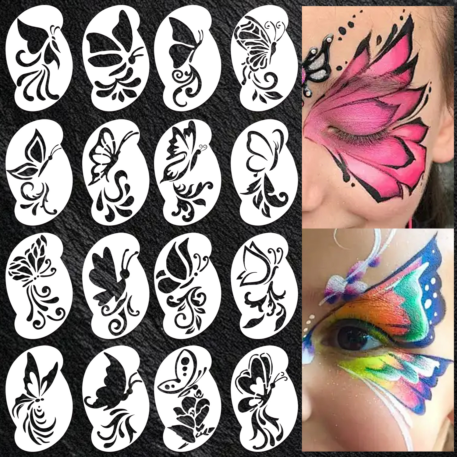 Templat lukisan wajah konser kupu-kupu makeup hewan cat air anak kulit berongga cetakan lukisan dinding semprot