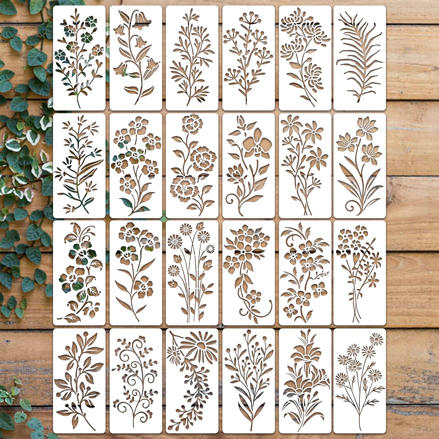 9 bunga dan tanaman templat lukisan berongga anak-anak siswa dilukis tangan pola DIY Salin alat bantu grafiti