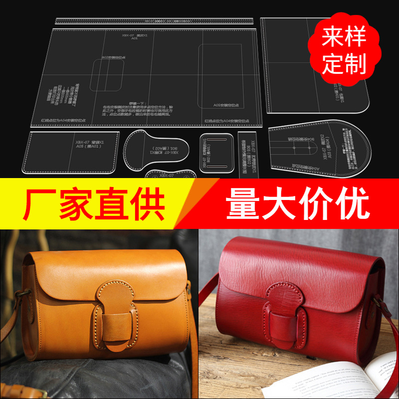 Diy buatan tangan contoh produksi kulit tas bahu akrilik tas kurir versi gambar cetakan desain