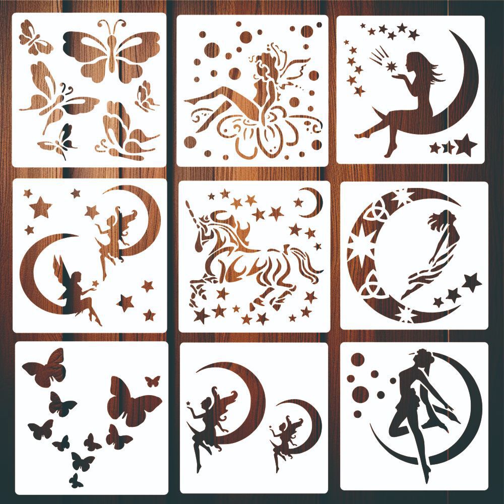 Templat Lukisan Pola Peri Kartun Kupu-kupu Peri Unicorn Motif Berongga Templat Set Gambar Dinding