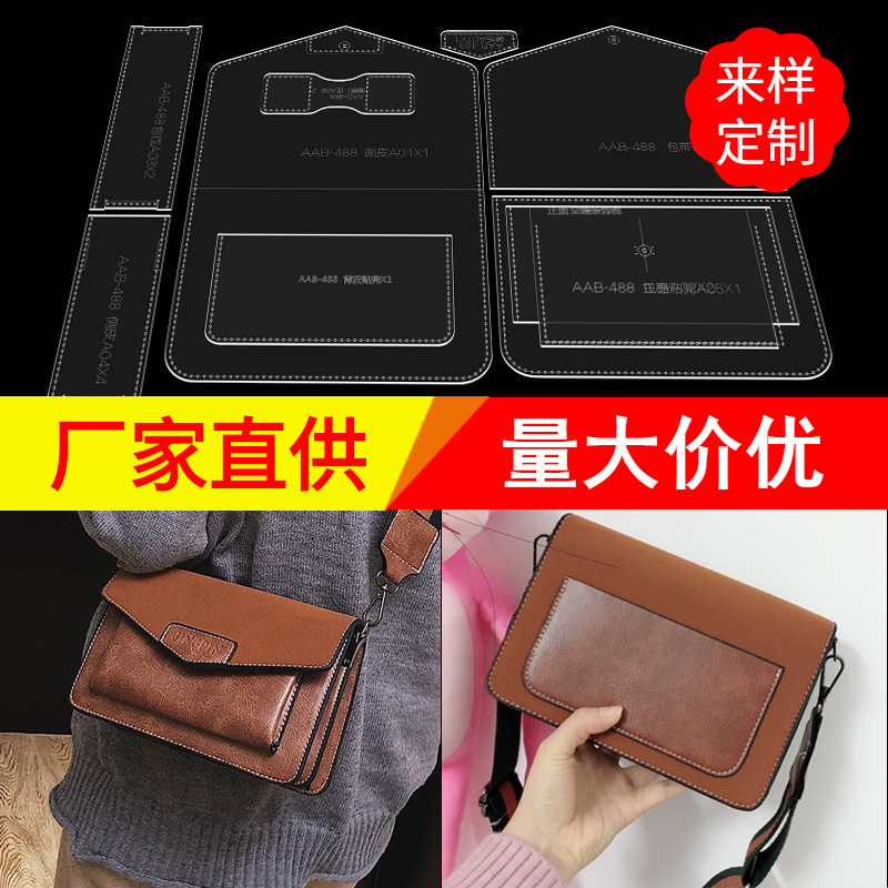Pola kulit buatan tangan membuat template tas selempang akrilik tas bahu menggambar template cetakan DIY alat