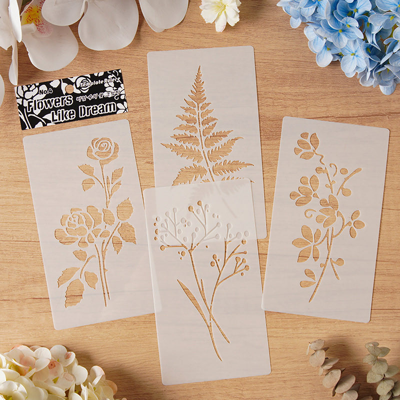 Templat Lukisan Bunga dan Rumput Baru Lintas Batas Papan Gambar Daun Berongga PET Dekorasi Semprot Graffiti DIY