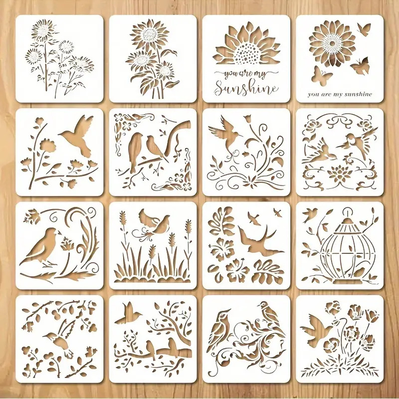 Templat lukisan tanaman dan bunga lintas batas cetakan lukisan hewan peliharaan berongga persediaan gambar tanaman herbal penyemprot grafiti dilukis tangan DIY