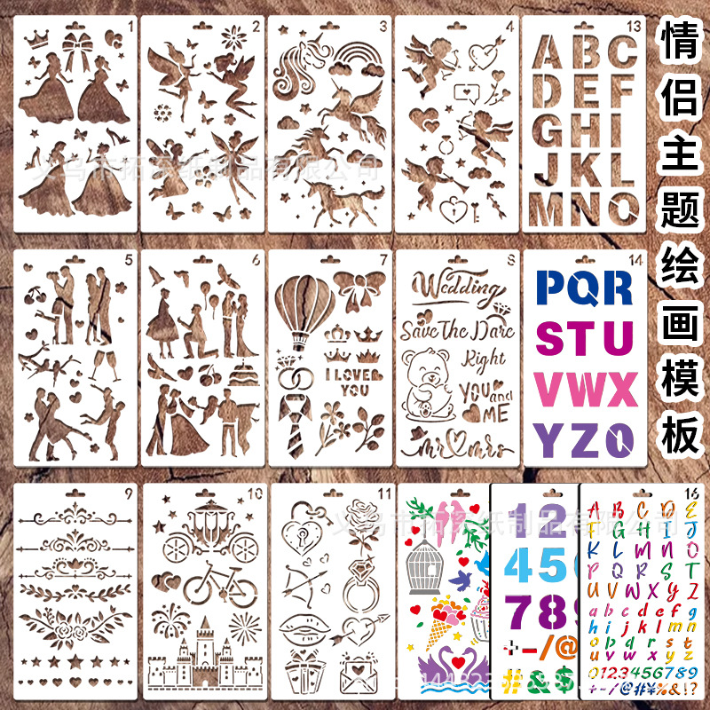 Amazon templat manual pertumbuhan romantis Hari Valentine templat lukisan berongga album DIY tema huruf pasangan