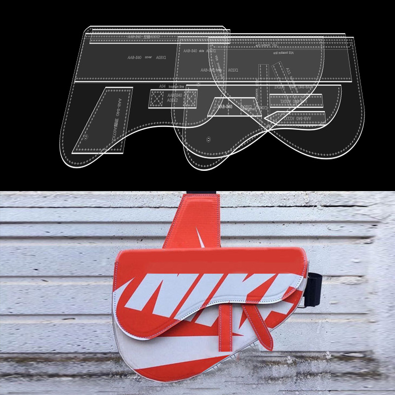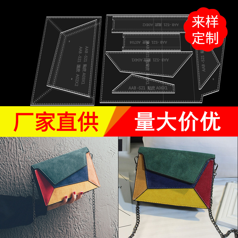 Tas sadel kulit buatan tangan diy tas dada versi gambar kertas kisi sampel tas kulit templat produksi akrilik