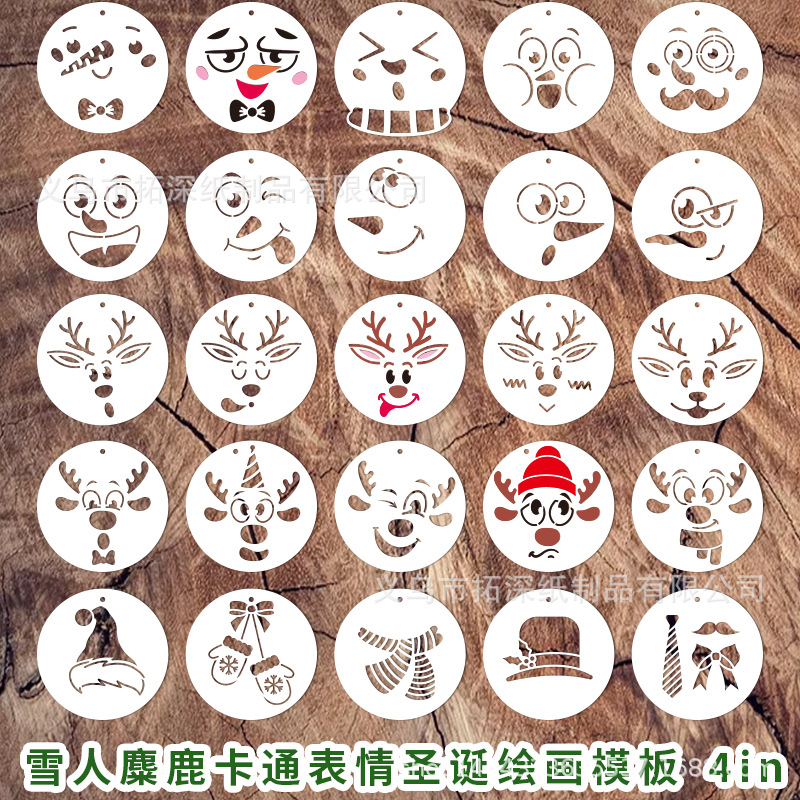 Amazon boneka salju Natal elk contoh lukisan ekspresi kartun lukisan grafiti berongga cetak inkjet DIY