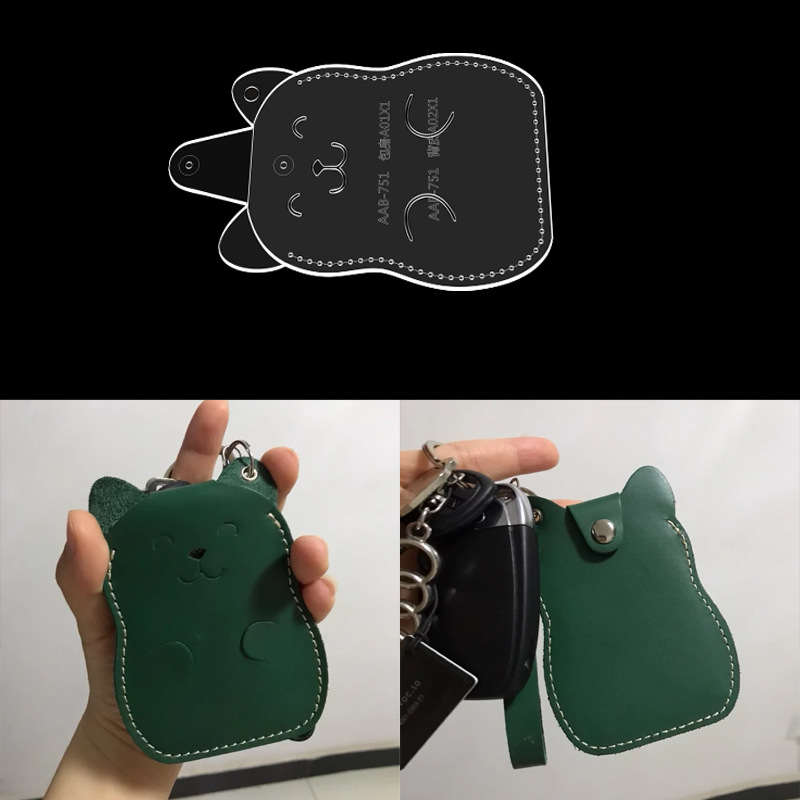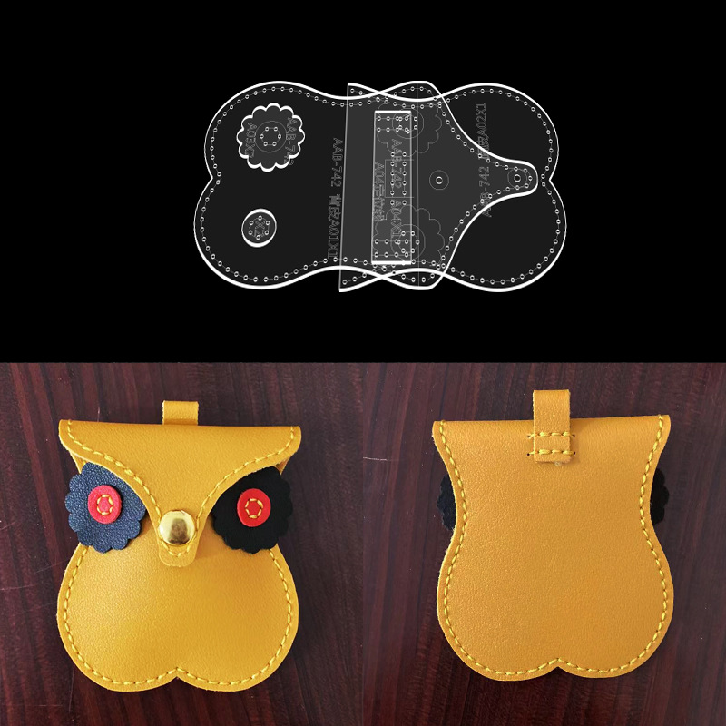 Casing kunci burung hantu kartun kulit buatan tangan Swakarya templat produksi contoh gambar versi akrilik