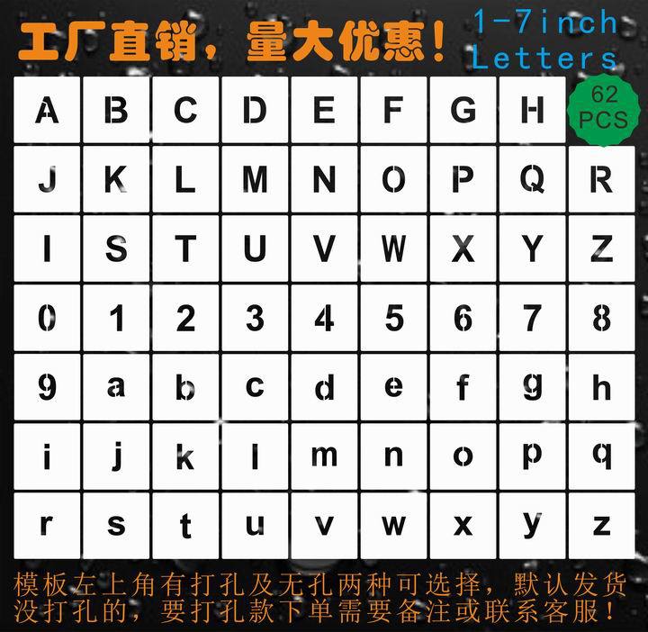 Cross-border dedicated 62-piece huruf Inggris dan angka inkjet template 62 huruf hollow lukisan dinding cetakan dekorasi