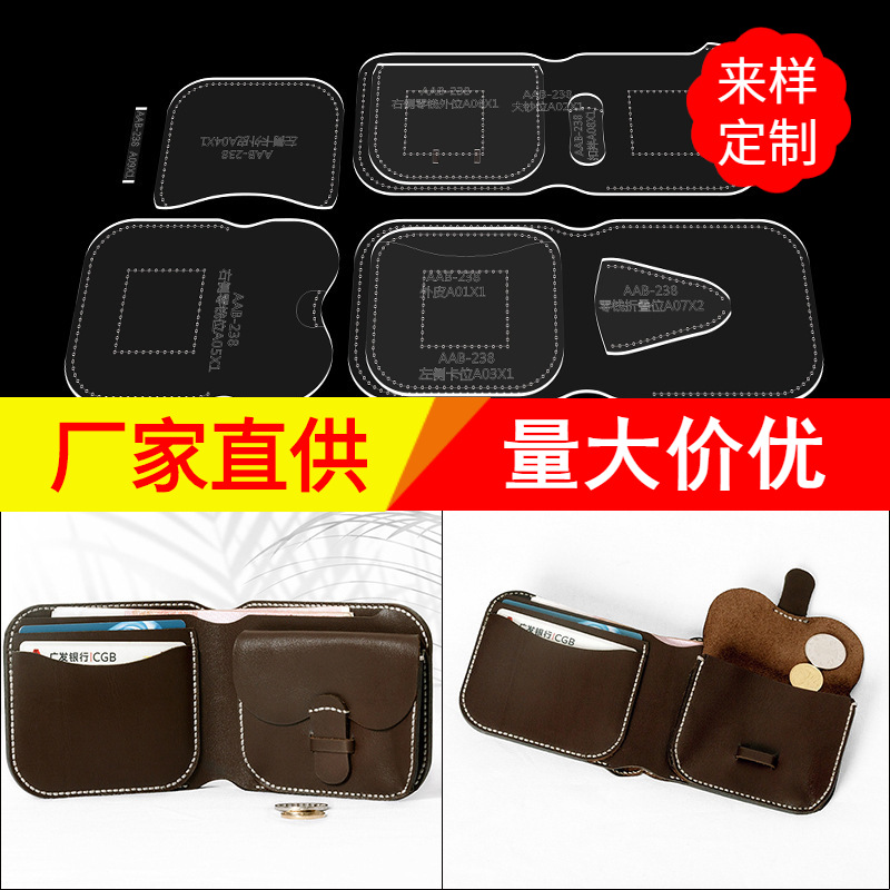 Dompet pendek kulit buatan tangan dompet kertas templat produksi akrilik cetakan gambar jenis tas kulit diy