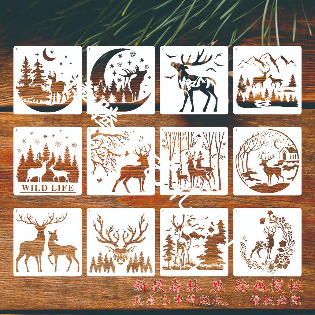 Templat lukisan rusa baru perlengkapan dekorasi lukisan tema hewan liar hutan papan gambar berongga rusa