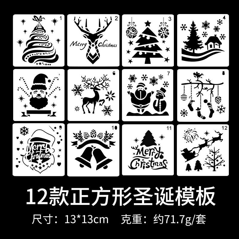 Selamat Natal Selamat Natal templat lukisan tema penggaris bahan hewan peliharaan 12 versi lukisan persegi