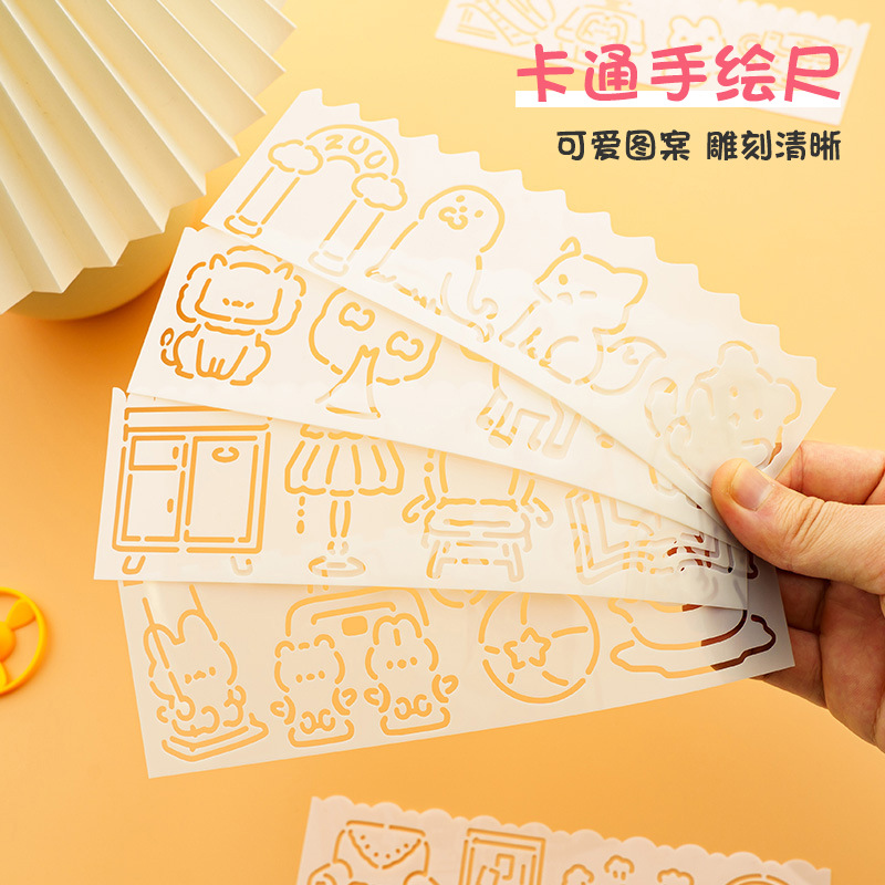 Penggaris renda dilukis tangan kartun penggaris warna anak-anak mengisi diy tulisan tangan template koran berongga mahasiswa grafiti multifungsi penggaris lukisan