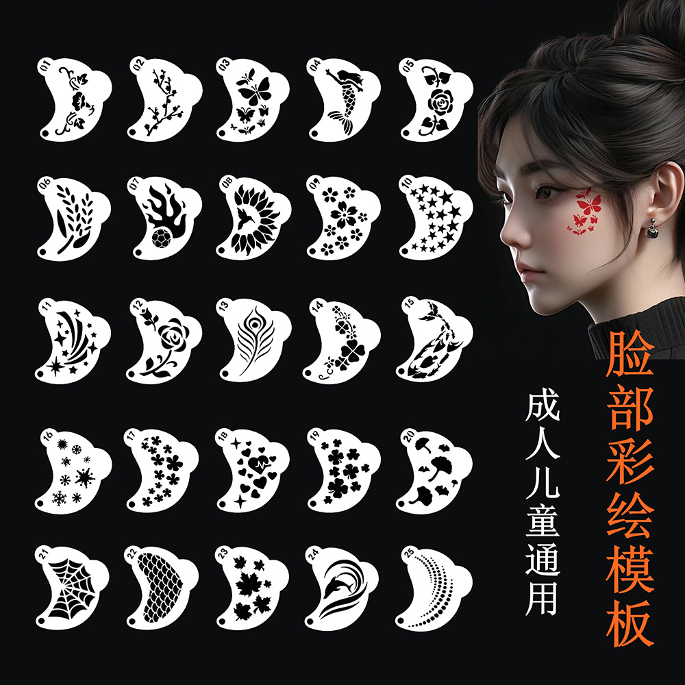 Cetakan penggosok plastik anak-anak dan dewasa, templat lukisan wajah sudut mata berongga, makeup pemula performa panggung 25 buah