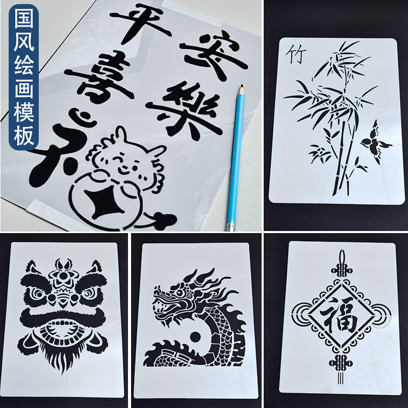 Templat koran tulisan tangan 8K festival universal lukisan rumah siswa alat gambar anak templat berongga universal grosir