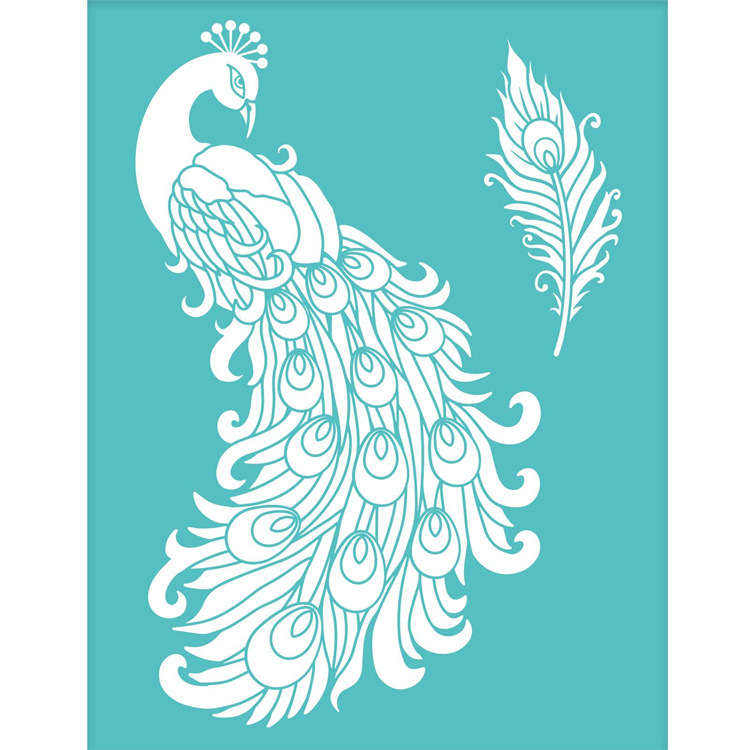 Templat layar sutra pola merak indah lintas batas, templat lukisan dapat dicuci perekat sendiri