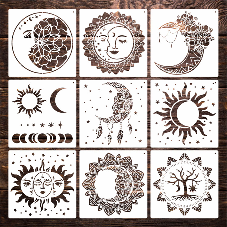 Amazon templat lukisan berongga baru DIY templat lukisan mandala tema matahari bulan setelan grosir