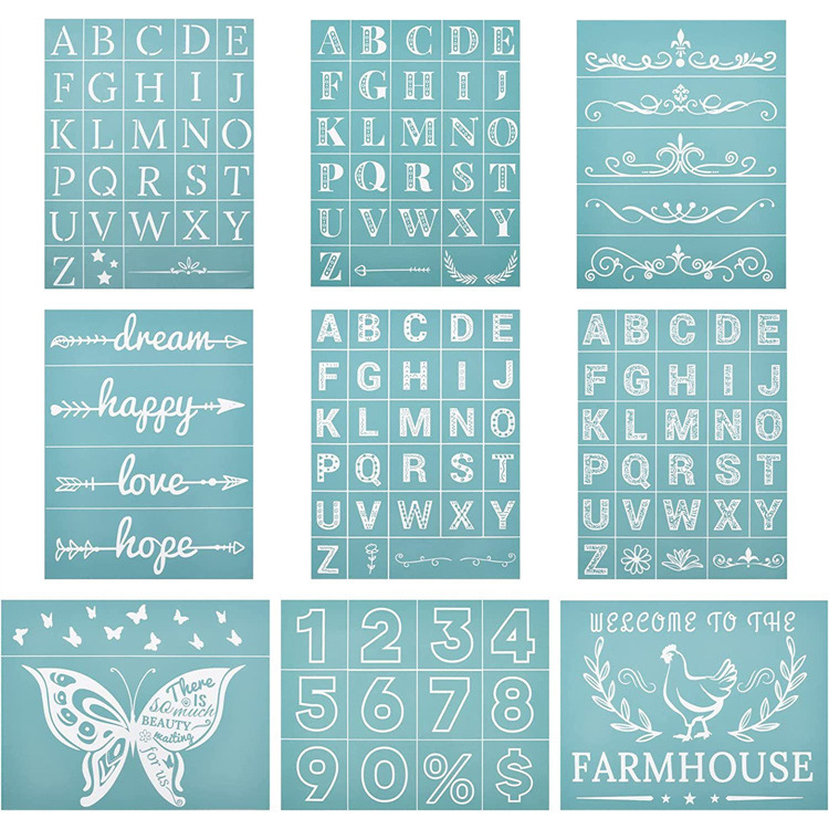 Templat lukisan huruf penjualan laris lintas batas dan templat huruf huruf huruf kecil papan kebocoran kata Inggris templat berongga hewan peliharaan grosir