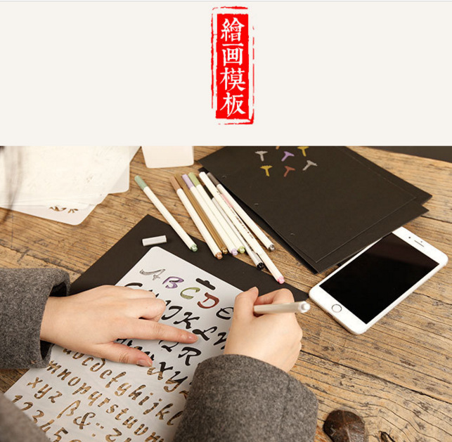 Alfabet dan nomor templat berongga anak-anak DIY lukisan akun tangan templat grafiti dicuci Tangan Salin cetakan tema koran