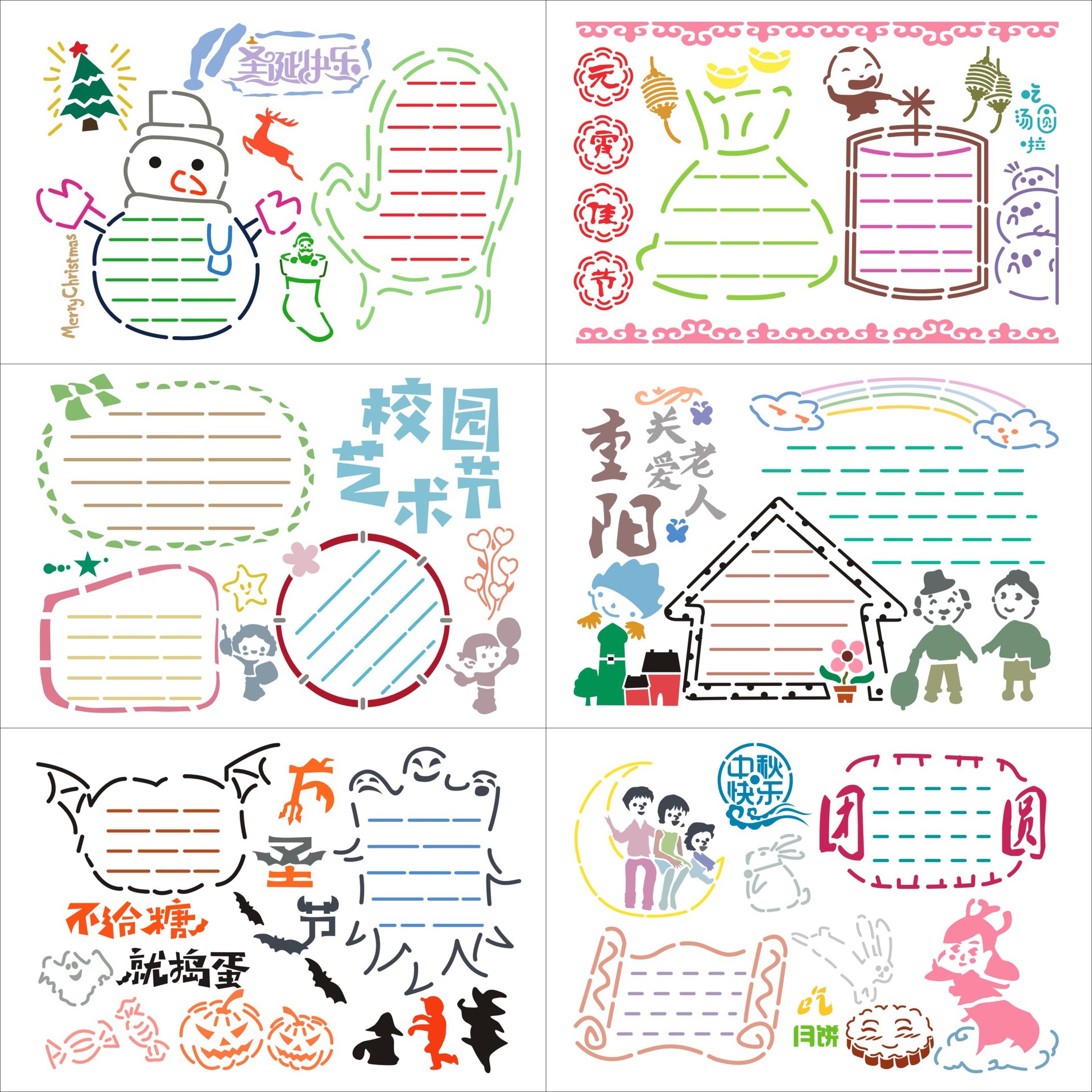 Template lukisan Natal berongga diy anak-anak artefak lukisan hewan peliharaan plastik jurnal template graffiti hollow Template