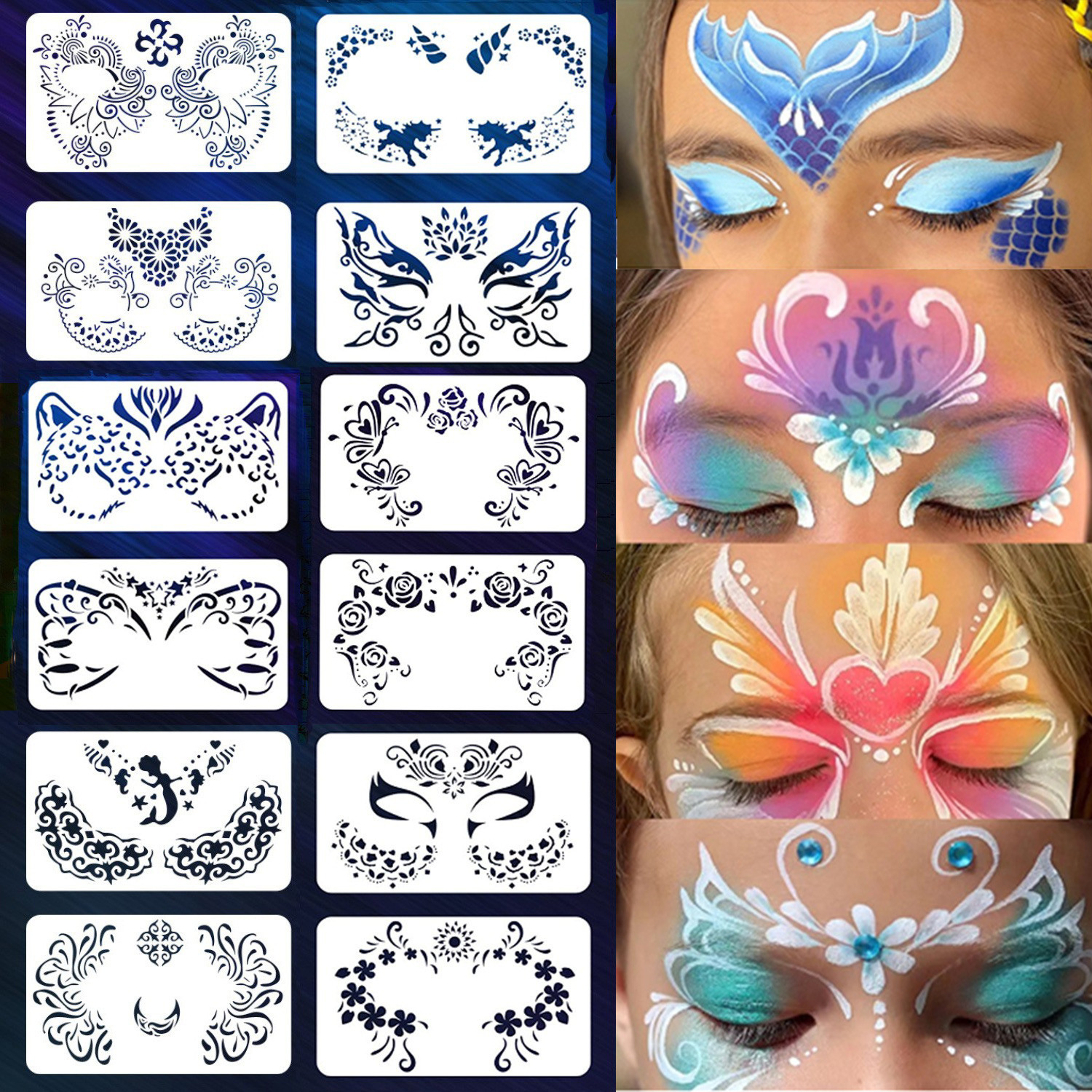 Lukisan wajah 12 templat lukisan wajah perdagangan luar negeri lintas batas lukisan semprot grafiti dapat dicuci penggunaan berulang bantuan makeup kinerja pesta