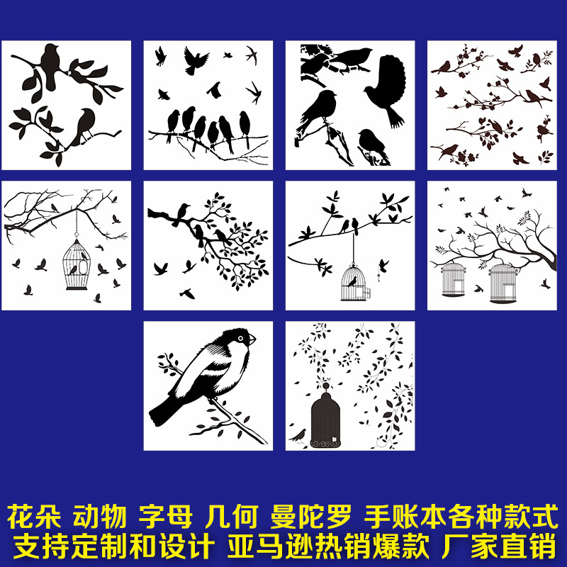 Lukisan lintas batas templat lukisan burung templat Musim Semi berongga IDY templat sikat pencocokan bantu anak-anak pabrik