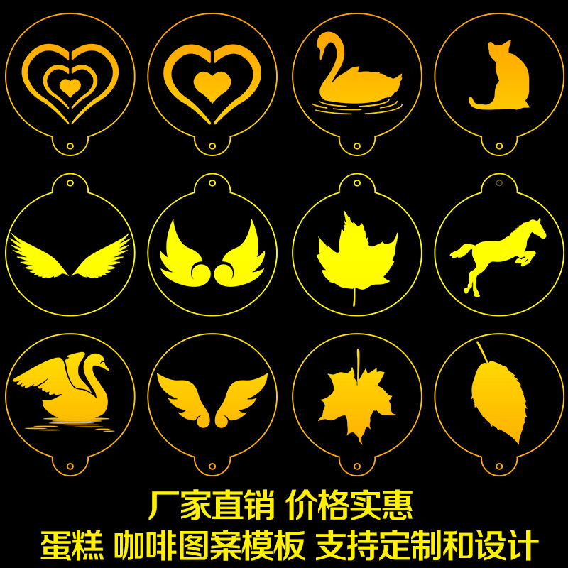 Lukisan pola kue kopi lintas batas templat berongga Swakarya dukungan produksi pola inkjet kartun desain kustom
