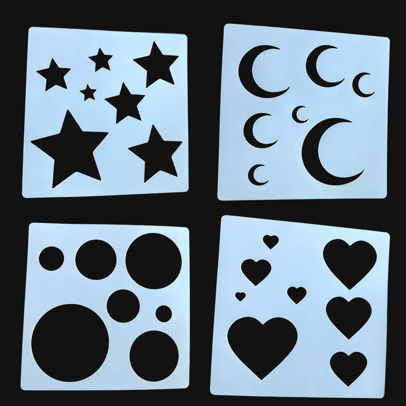 Pasokan Amazon bulan cinta bintang lima-runcing bulat dekoratif stiker transparan jurnal DIY lukisan templat berongga