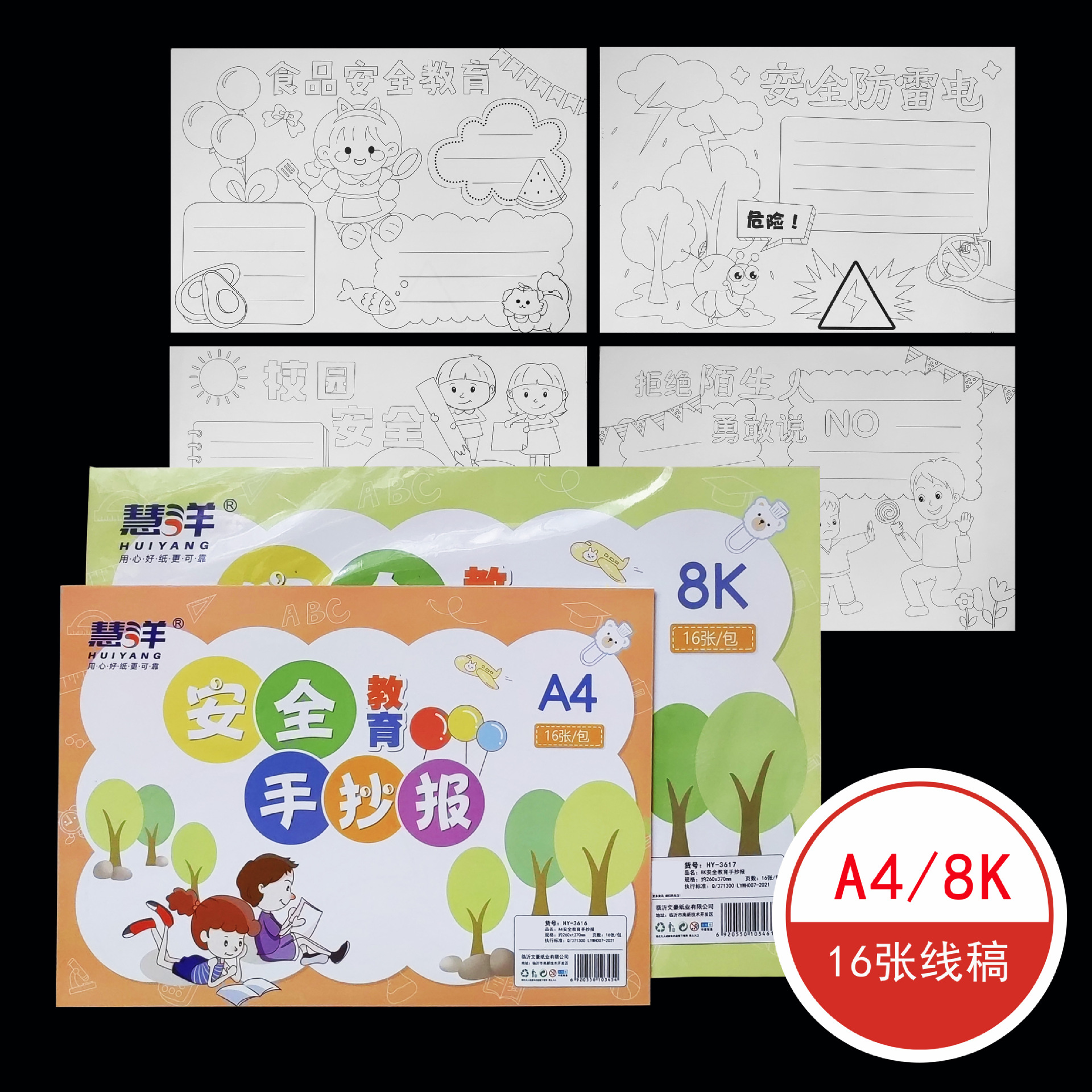Huiyang pendidikan keselamatan tulisan tangan koran 16 lukisan kosong 8K A4 kampus Gambar Kertas Lak bahan template