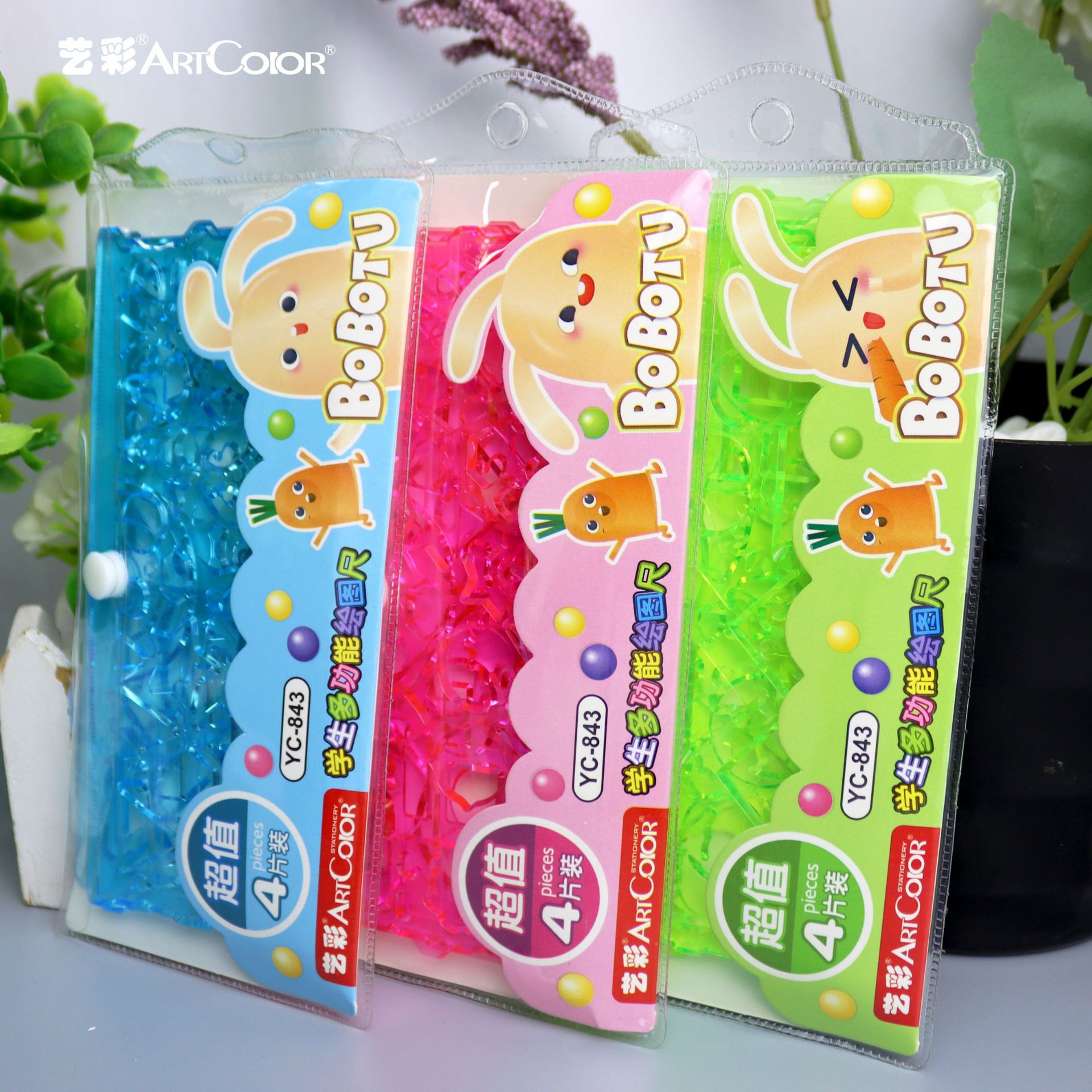 Penggaris gambar Multifungsi, grosir gaya lucu templat gambar kartun anak-anak pendidikan kreatif set penggaris