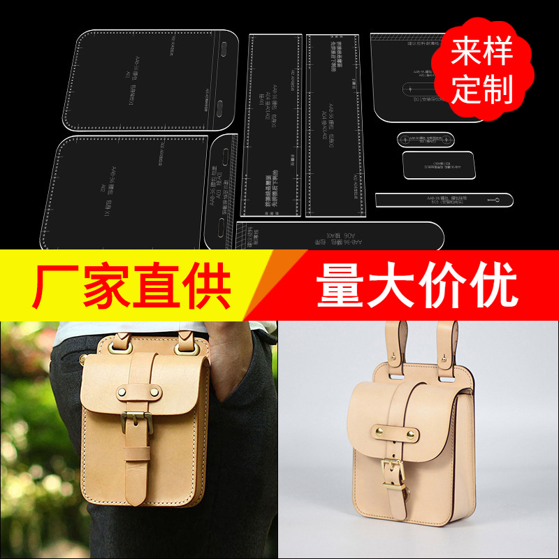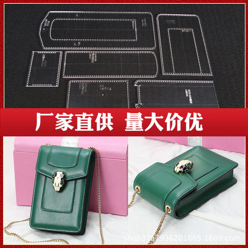 Tas ponsel kulit buatan tangan diy penutup tas gambar versi templat akrilik desain dan produksi pelat kisi kertas