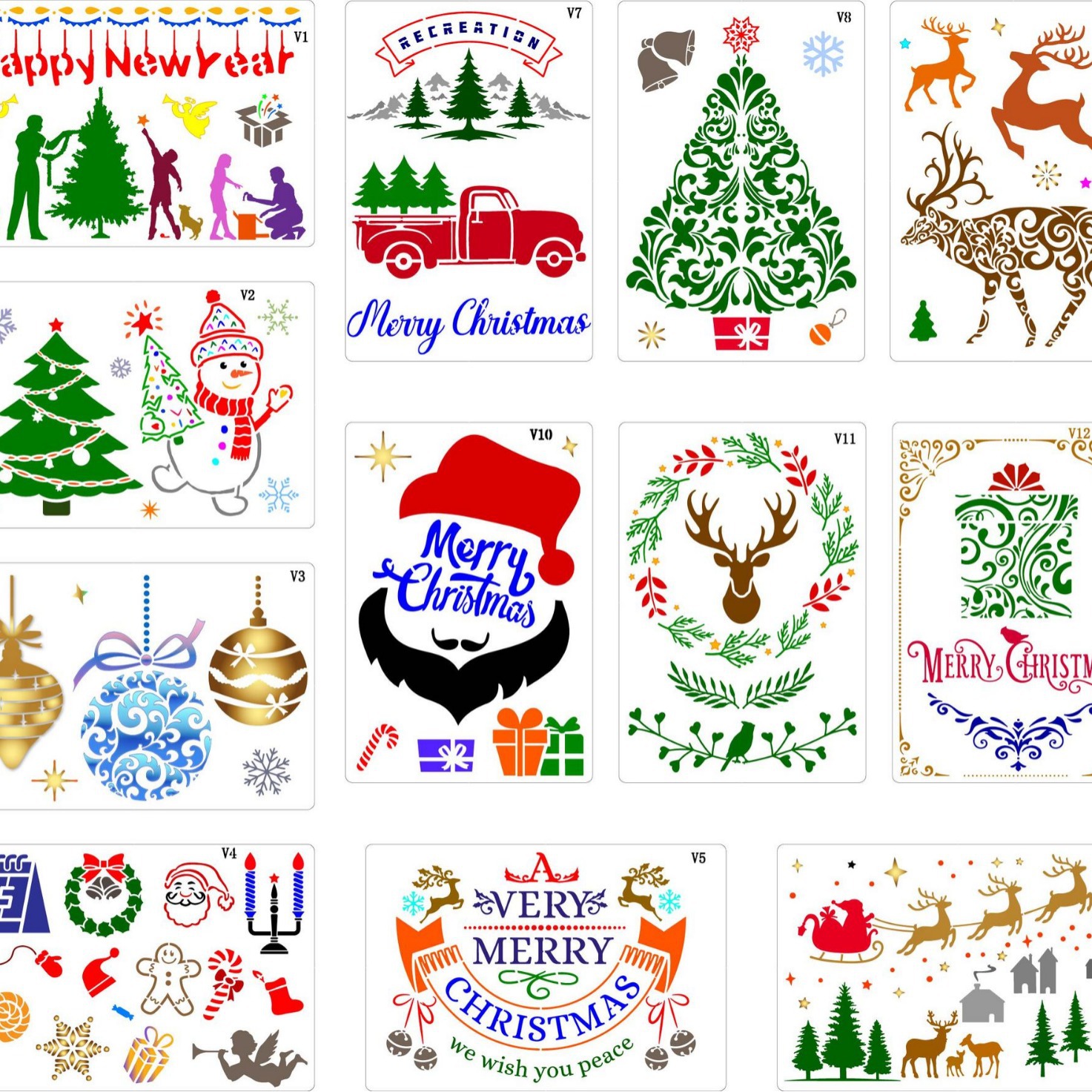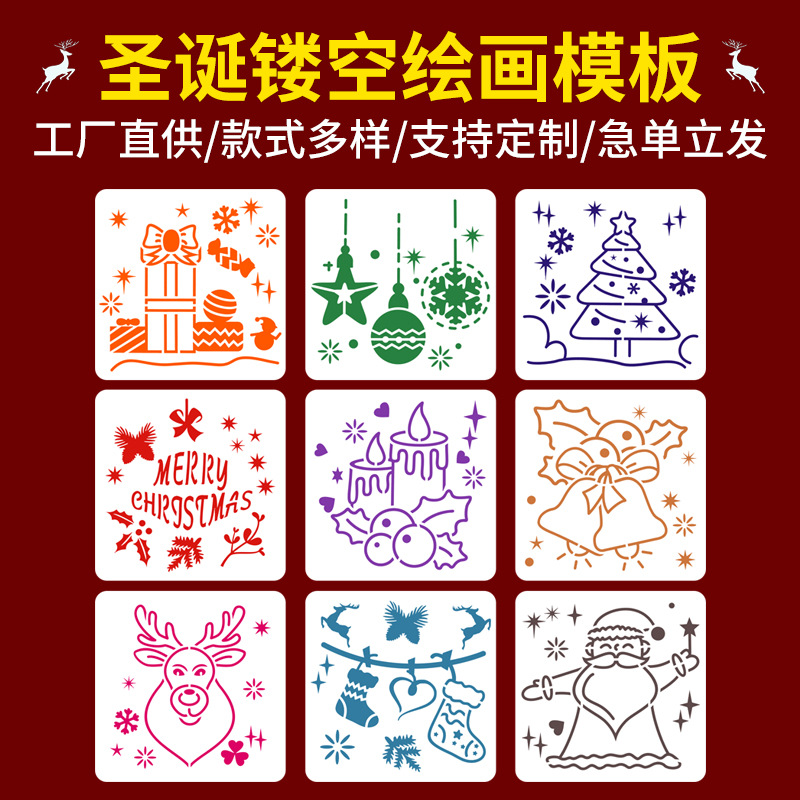 Templat lukisan Natal grosir pelajar hewan peliharaan berlubang lukisan dinding grafiti anak-anak bantu Salin templat yang dilukis tangan diy